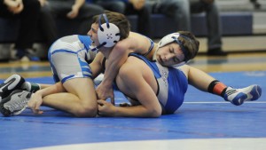 DSC_9870b By Andre Jones | January 16, 2013 2:26 pm New Kent’s Blake Hohman turns his York opponent, securing a pin moments later at 126 pounds.