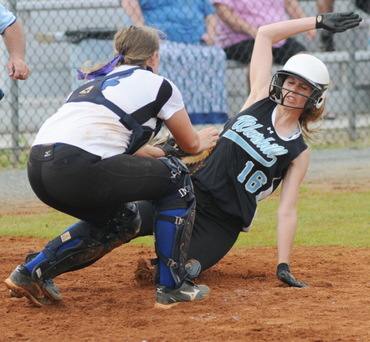 New Kent catcher Kristin Colegrove blocks the plate and easily tags out Warhill’s Cara Costanzo in the eighth inning.Alan Chamberlain photo