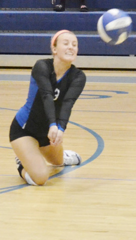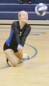 DSC_0012 By Andre Jones | October 23, 2013 7:05 pm New Kent’s Olivia Foster is able to get down and dig the ball to continue a long rally.Andre' Jones photo