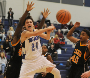 for an assist. The pass found Christian Block open in the corner for a three that put the Trojans up 53-37 in the fourth quarter.Alan Chamberlain photo