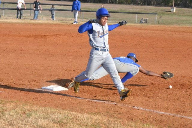 Charles City's Charles Vaden is able to beat a throw to first base for a single in the second inning.