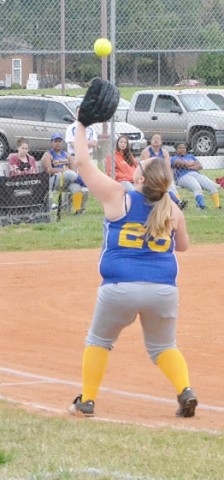 Lady Panther Mary Black stretches out her arm to pull down a line drive to left field in the fifth inning.
