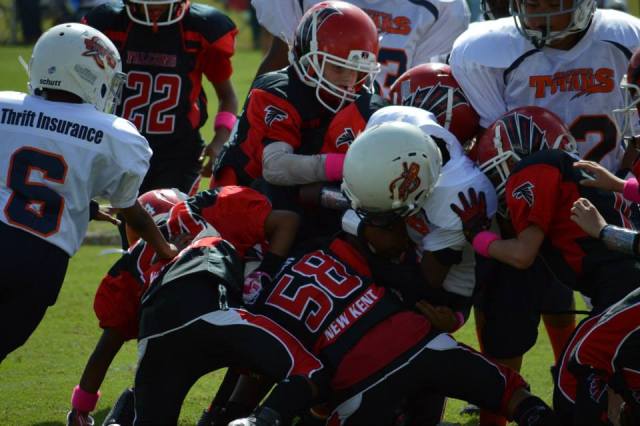 The Midgets used a defensive presence to top the Titans 31-19 in the third game of the day. Jay Poole returned an interception for a touchdown to start the scoring. Jaylen Akrie-Williams and Kimonte Brown’s rushing attack helped up the Falcons record to 3-2. In the final contest, the Peewees started fast with a 63-yard touchdown run from Thomas Wilson on way to a 27-0 shutout of the Titans. Taylor Bey contributed to the scoring, helping the team improve to 3-2.