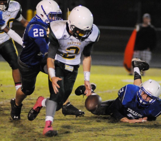 With 34 seconds left in regulation and overtime looming if Bruton made good on a two-point conversion, New Kent’s defense rose to the occasion. The host Trojans stuffed the Panthers’ bid to extend Friday night’s football encounter to preserve a 28-26 victory in an error-plagued contest during which each team capitalized on the opponent’s miscues.