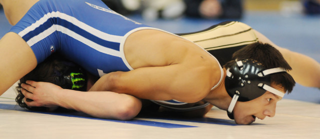 New Kent's Shane Weimer takes full control of his King William opponent on the way to a pin in Saturday's Trojan Duals wrestling tournament. More photos of the event can be found by clicking on "Photo Gallery."Alan Chamberlain photo