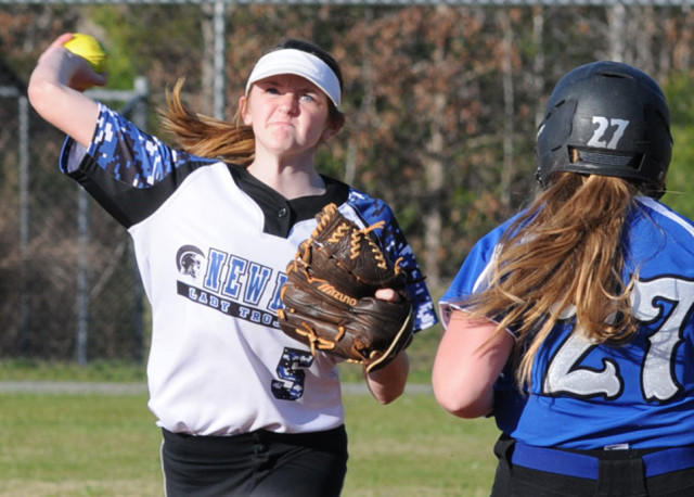 New Kent second baseman Jada Evans fires to first after forcing out York's Britney Hepner on a play at second in the fourth inning.Alan Chamberlain photo