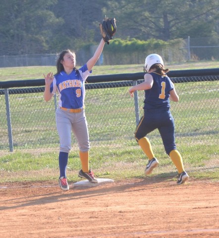 Charles City first baseman Nakoma Adkins (9) snags a throw to retire Washington & Lee's Katie Leonard.Andre' Jones photo
