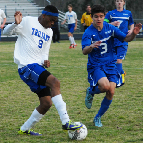 York’s Falcons entered Tuesday night’s soccer clash at New Kent as the state’s number one-ranked 3A team, and most likely with an expectation of walking over the Trojans who have yet to experience a win this season. Instead, they encountered a team more than up to the challenge.