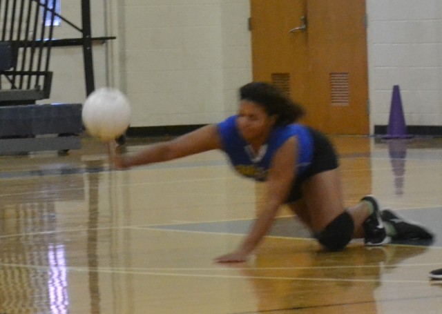 Charles City's Keanna Motley fully extends her body in a diving effort to keep the ball in play.Andre' Jones photo