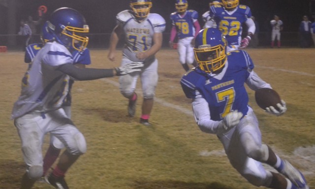 Senior Troy Crawley (7) turns the corner around Mathews' defender Justin Ashberry in what results as a 12-yard touchdown run.Andre' Jones photo