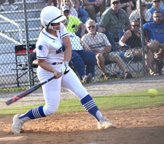 New Kent’s Morgan Berg would make contact with a pitch that drives home the Lady Trojans’ tenth run in the bottom of the fourth inning.Robb Johnson photo