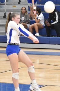 DSC_0371 By Andre Jones | September 30, 2024 11:44 am New Kent’s Carina Dolci backs up a teammate with a bump over the net.Robb Johnson photo