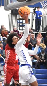 New Kent’s Kris Leeper makes a move to the basket for an easy lay-up.
