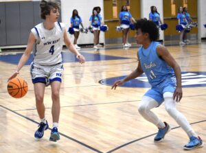 DSC_1037 By Andre Jones | December 31, 2024 12:05 pm New Kent’s Will Ross (4) handles the pressure with poise from Hanover defender Aidan Trimiew (11).Robb Johnson photo