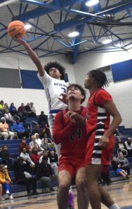 DSC_0593 By Andre Jones | February 9, 2025 10:39 am New Kent’s Kris Leeper (3) lays it up and in over a pair of Grafton players for a score.Robb Johnson photo