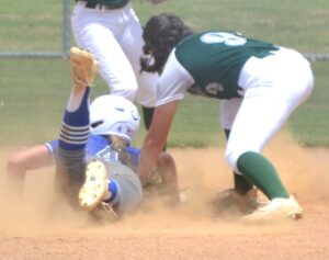 Kendall White slide into 2nd 6_13 By Andre Jones | June 15, 2025 6:33 pm New Kent’s Kendall White (4) slides into second base safely under the tag by Broadway’s Emma Morris (9).Noah Kennedy photo