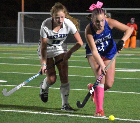 New Kent’s Alivia Snow (11) outhustles Deep Run’s Emily Bennett (13) to retain possession of the ball.Robb Johnson photo