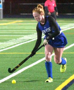New Kent’s Bailey Borszich charges down the sideline and she pushes the ball down the field.