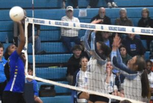 Charles City's Derequa Johnson (left) tips the ball over Middlesex defenders Kaitlyn Hargrove (center) and Payton Baker (right), leading to a successful score.Andre' Jones photo
