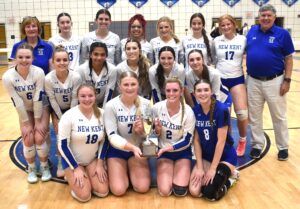 DSC_0083 By Andre Jones | November 14, 2025 11:56 am New Kent's Lady Trojans celebrate with their trophy after capturing the Region 3A volleyball championship.Robb Johnson photo