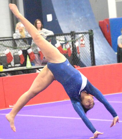 New Kent’s Dahlia Grech executes a cartwheel as part of her tumbling routine during the floor exercise.Robb Johnson photo
