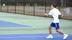 DSC_0615 By Andre Jones | March 23, 2026 11:35 pm New Kent’s Rylan Opett winds up to deliver a forehand shot across the net.Robb Johnson photo
