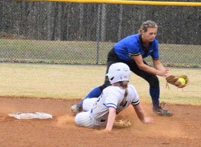 New Kent’s Mariah Leonard slides safely into second base ahead of a Smithfield tag.Robb Johnson photo