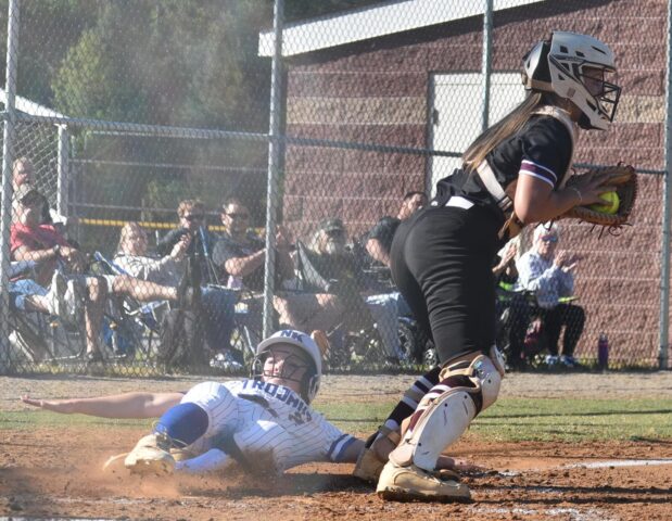 For six innings, New Kent’s Lady Trojans looked to keep their long, homestanding win streak intact as they led the Poquoson Lady Islanders 3-1. But in the top of the seventh inning, the visitors’ bats came alive.