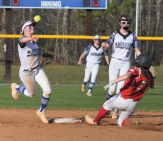 While New Kent’s Lady Trojans’ pitching and defense continues to look as it did last year, their offense has been hitting a wall lately. But the hosts had enough offense in an Apr. 11 affair against the visiting Smithfield Lady Packers thanks to a solo homerun in the fifth. New Kent’s Haley Baker’s blast provided enough of a cushion as the hosts held on to a 2-1 win in a tightly contested Bay Rivers’ clash. The hosts got on the board in the third inning after Amya Evans dove in head first into home plate after a Smithfield error to…