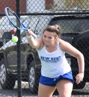 New Kent’s Lady Trojans tennis team fell at home to Grafton in an Apr. 11 Bay Rivers match-up. The Lady Trojans record drops to an even .500 (5-5) on the season. Grafton 7, New Kent 2 Singles: Cloud (G) def. McCartney (NK) 6-2, 6-0; Ogusu (G) def. Gentry (NK) 7-5, 7-6; O’Connell (G) def. Epps (NK) 6-1. 6-3; Phan (G) def. Butler (NK) 6-0, 2-6, 1-0; Vora (G) def. Fowlkes (NK) 7-5, 6-3; Vaillancourt (G) def. Coutu (NK) 6-7, 6-2, 1-0. Doubles: Cloud/O’Connell (G) def. McCartney/Gentry (NK) 9-8; Butler/Coutu (NK) def. Vora/Dianali (G) 9-8; Epps/Fowlkes (NK) def. Edwards/Tranitham (G) 8-0.
