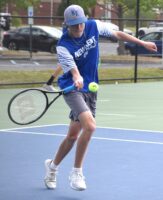 New Kent’s boys’ tennis team triumphed over the visiting Poquoson Islanders in Apr. 27 Bay Rivers District tennis action. New Kent’s record improves to 4-5 on the season. New Kent 6, Poquoson 3 Singles: Hanson (NK) def. Murianka (P) 6-0, 6-0; Alexander (NK) def. Horton (P) 6-3, 6-2; Krause (NK) def. McDale (P) 6-0, 6-0; Fink (P) def. Evelyn (NK) 6-4, 6-2; Sia (P) def. Edwards (NK) 6-2, 7-5; Sorrell (NK) def. Van Fossen (P) 6-4, 7-5. Doubles: Hanson/Alexander (NK) def. Murianka/Gill (P) 8-1; Krause/Douglas (NK) def. Horton/Fink (P) 8-5; Sia/Harris (P) def. Evelyn/Crary (NK) 9-7.